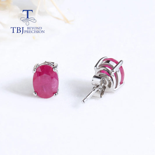 Natural Ruby oval 6*8mm gemstone simple & classic design earring 925 sterling silver jewelry for girls & lady gift